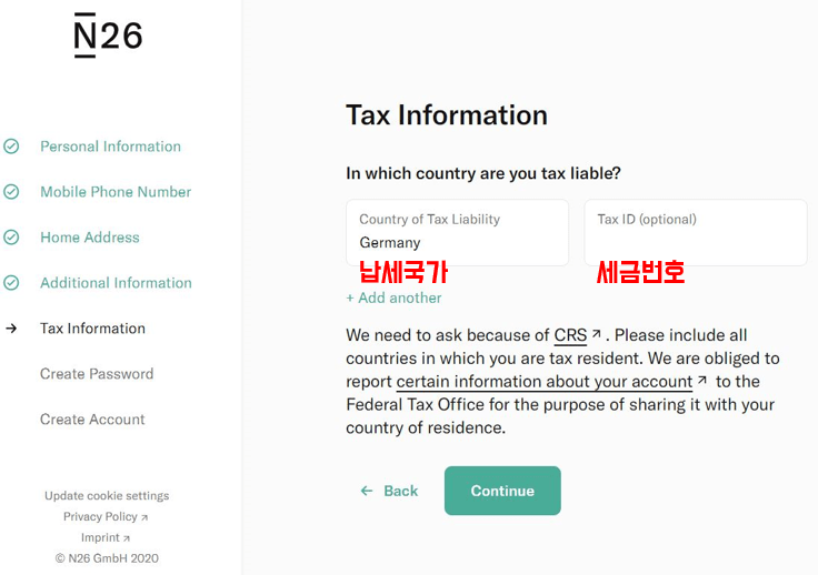 7. 독일 세금번호를 기입합니다. 세금 번호가 없는 경우 그냥 진행 후 나중에 기입해도 됩니다. 독일에 처음으로 거주지 등록을 할 경우 세금 번호가 우편으로 날아옵니다.