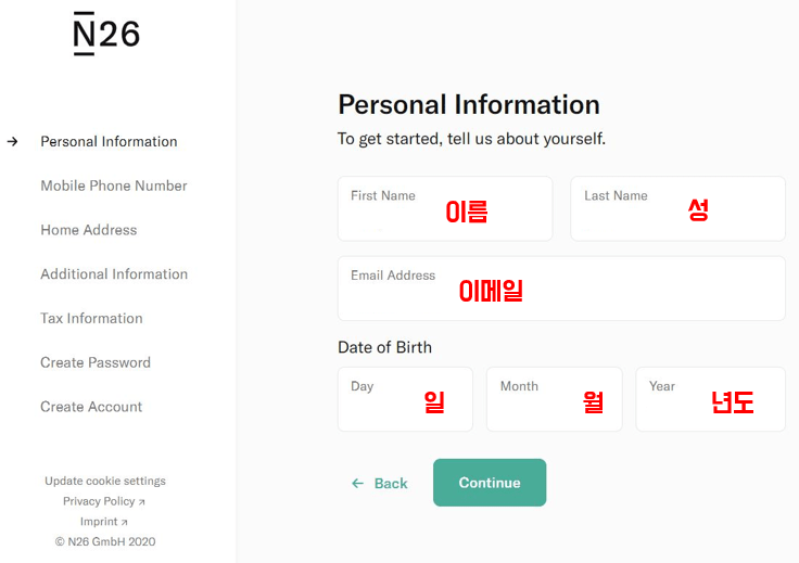 2. 이름, 이메일, 생년월일을 기입합니다.