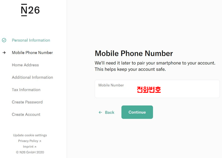 3. 인증번호를 받을 전화번호를 기입합니다.